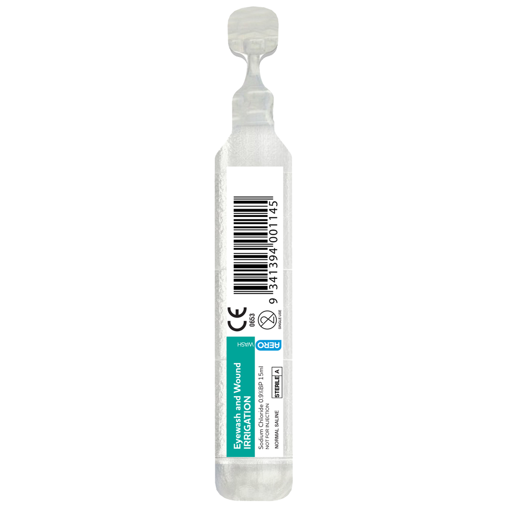 AEROWASH provides a safe and cleansing remedy for cleaning debris from wounds and eyes. Strictly Sodium Chloride AEROWASH is made up strictly of Sodium Chloride 0.9% sterile solution which is safe and cleansing for eyes and wounds. Easy to Use AEROWASH is available in twist off ampoules or in a tear off sachet both of which are convenient and easy to use in an emergency.